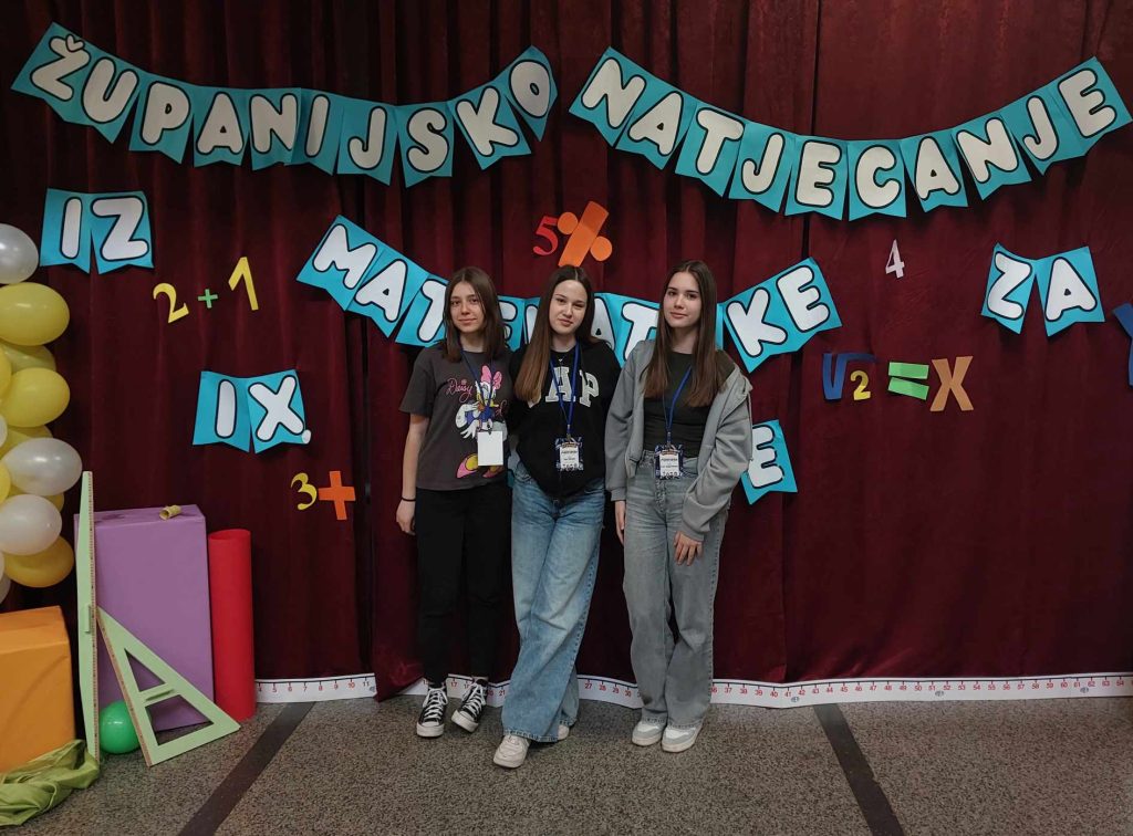 Županijsko natjecanje iz matematike za učenike 9. razreda održano je 14. travnja u Osnovnoj školi „Busovača“. Na natjecanju je sudjelovalo sedamnaest škola s područja KSB. Našu školu predstavljale su učenice Lara Augustinović, Tea Kelava i Gloria Lučić pod mentorstvom nastavnice Ivane Dražeta. Učenice su pokazale odlično znanje i ostvarile 5. mjesto.
